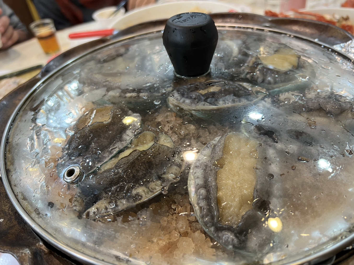 蒸しアワビは一人ひとつ。